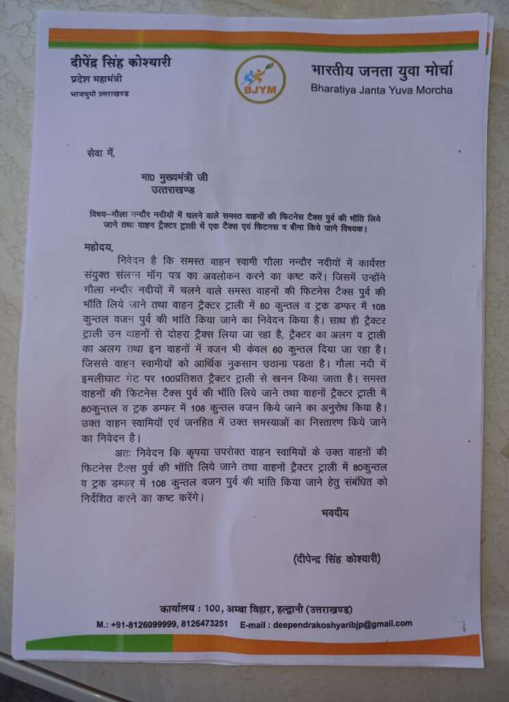 लालकुआ-भाजयुमो प्रदेश महामंत्री दीपेंद्र कोश्यारी के नेतृत्व में मुख्यमंत्री से मिले खनन व्यवसाई”लालकुआँ /गोला-नन्दौर नदी क्षेत्र की समस्याओं पर हुई गहन चर्चा-(पढ़े पूरी खबर)