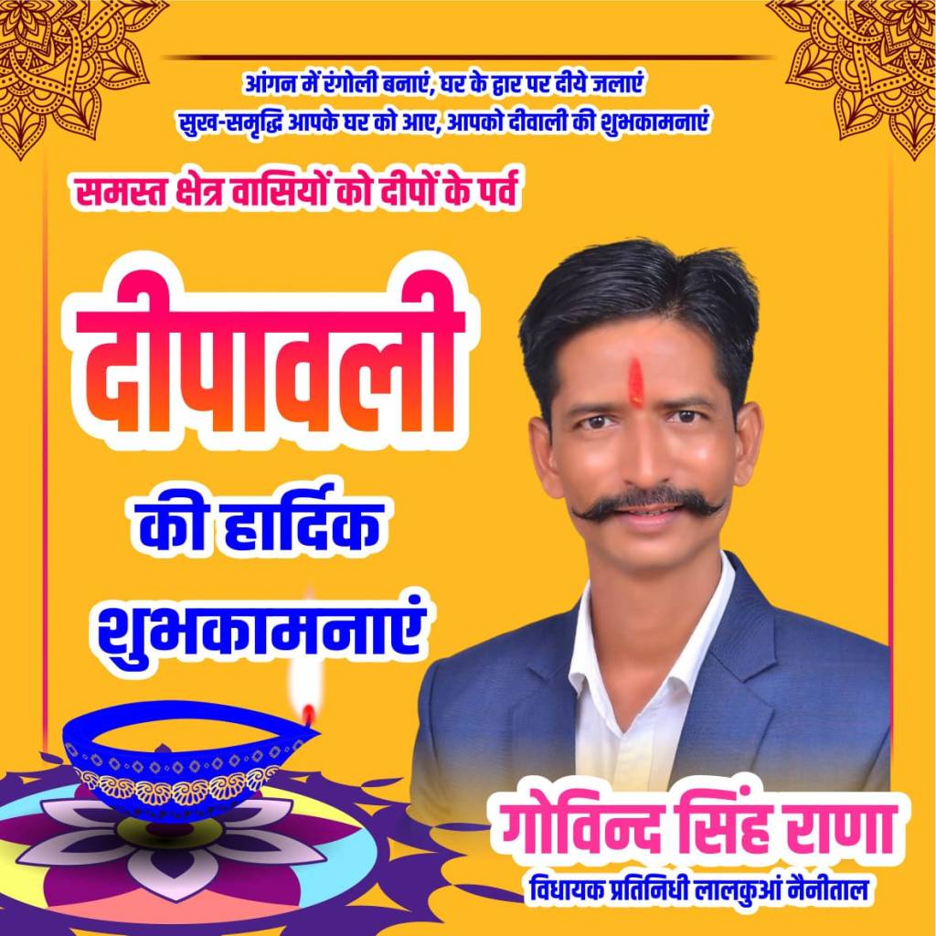 लालकुआं ब्रेकिंग- विधायक प्रतिनिधि गोविन्द सिंह राणा ने दी लालकुआँ वासियों को दीपावली पर्व की शुभकामनाएं एवं बधाई, मां लक्ष्मी से लोगों के सुख समृद्धि की कामना। -(पढ़े पूरी खबर)